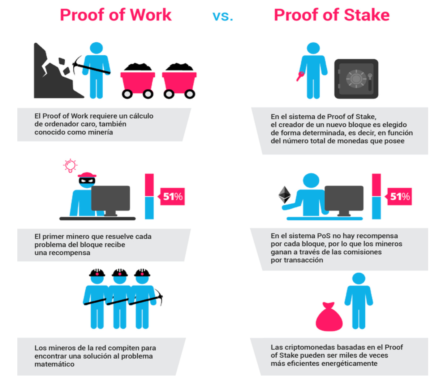 Es un cambio en como se procesan las tx en la blockchain y como se cuida la red. Ethereum pasará de “Proof of work” (El que utiliza Bitcoin) a “Proof of stake” y esto cambia el juego por completo.