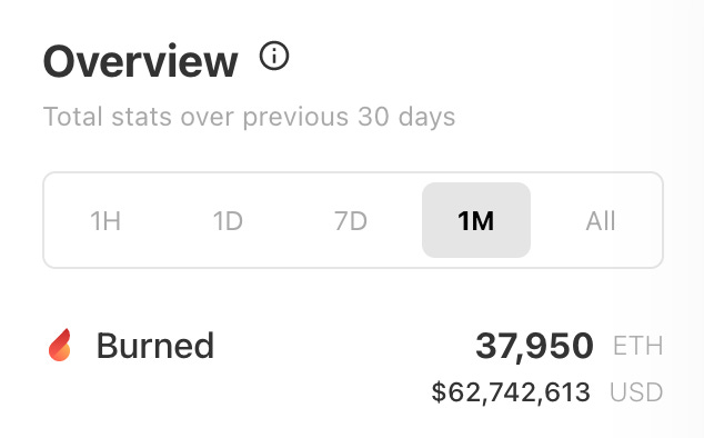 Agreguemos que desde el año pasado (Con la actualización EIP-1559) se está quemando (Eliminando) una porción de los ETH con los que se pagan las tx. En los últimos 30 días se quemaron 37,950 ETH.
